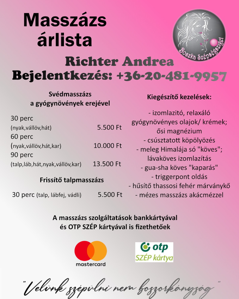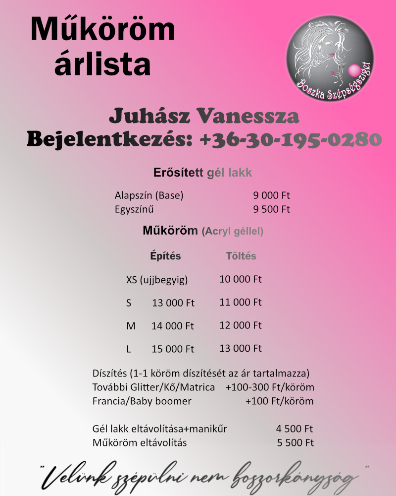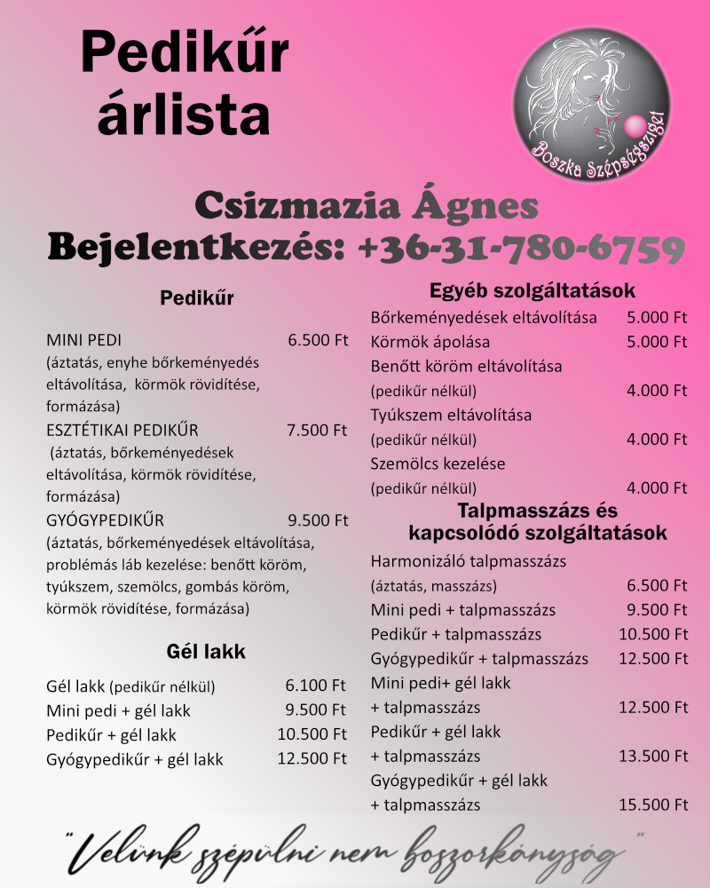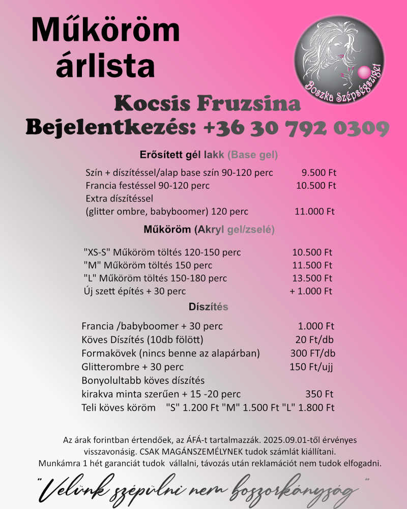 Az árak forintban értendőek és tartalmazzák az ÁFÁ-t.
