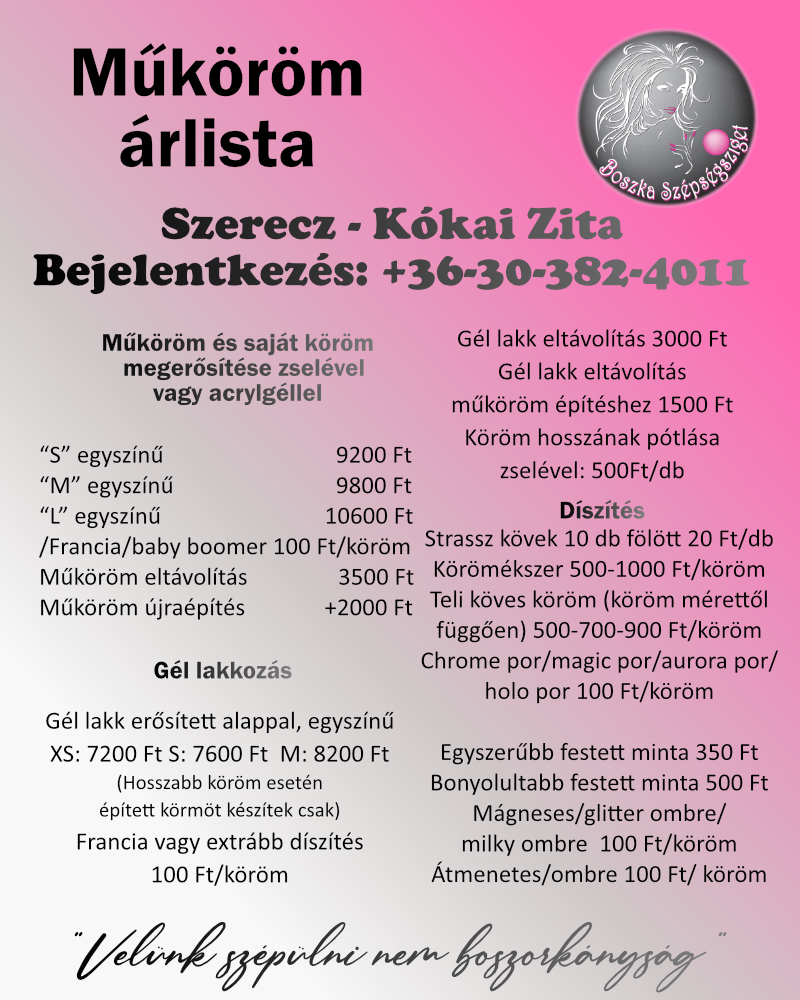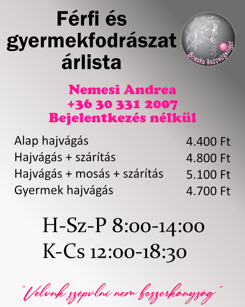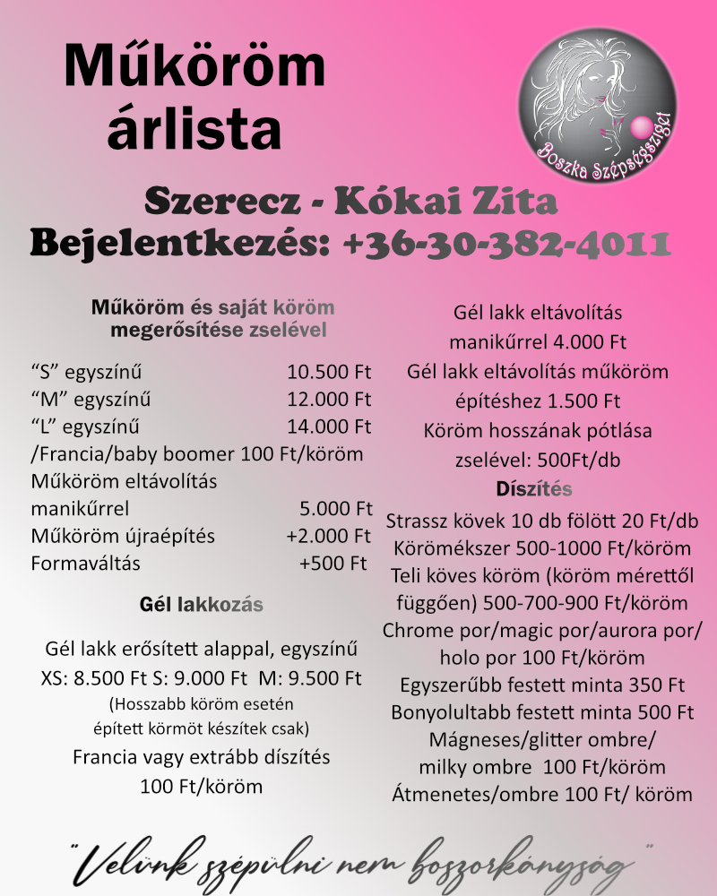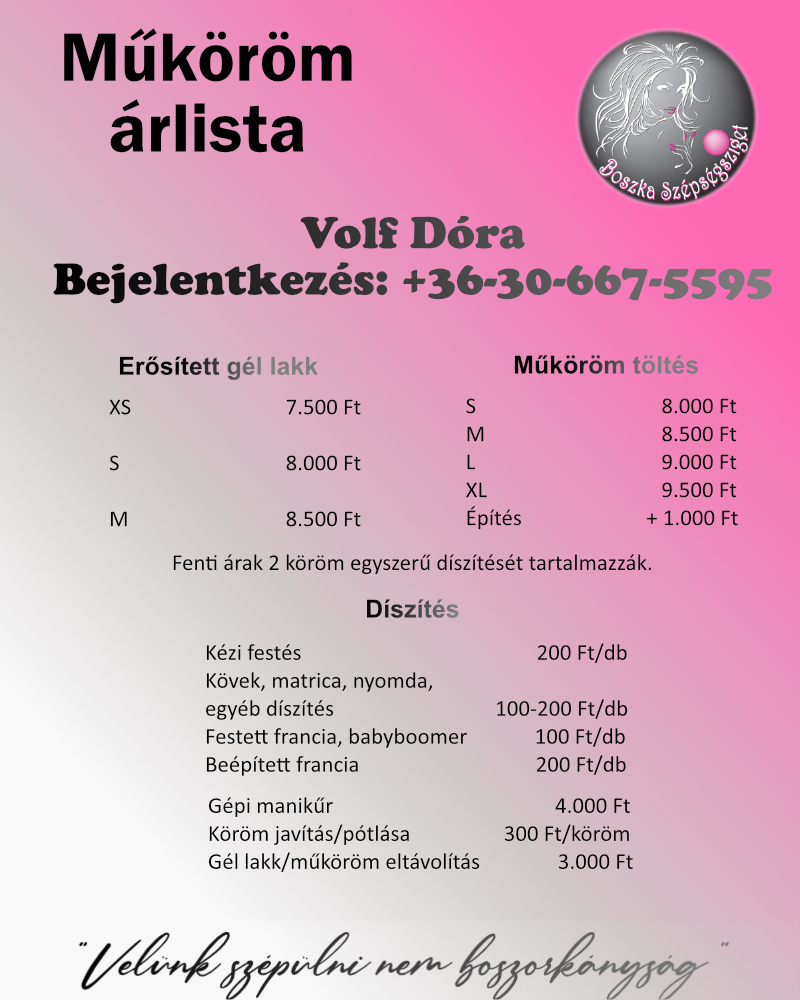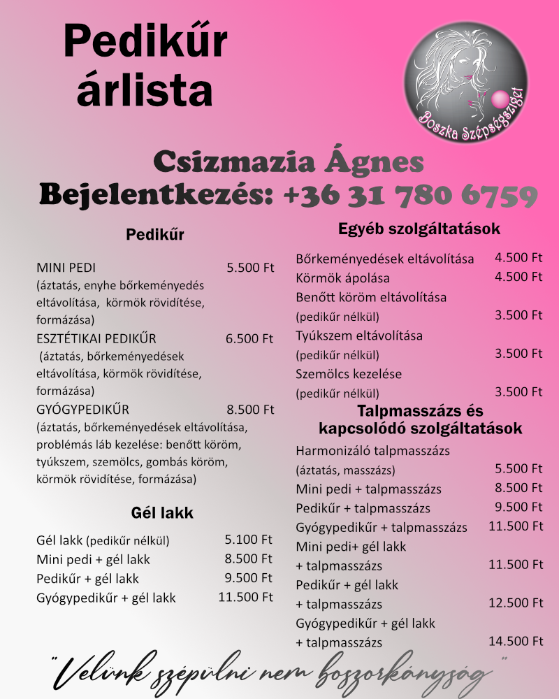 Az árak forintban értendőek és tartalmazzák az ÁFÁ-t.